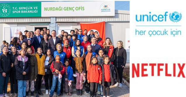 GAZİANTEP, 5 Şubat 2024 – Gençlik ve Spor Bakanlığı, Bakan Yardımcısı Dr. Enes Eminoğlu, UNICEF Türkiye Temsilcisi Paolo Marchi ve Netflix Türkiye, Ortadoğu ve Kuzey Afrika Kamu İlişkileri Direktörü Pelin Mavili; Gaziantep'in Nurdağı ilçesindeki konteyner kentte kurulan Genç Alan’da çocuklar ve gençlerle bir araya geldi. UNICEF ve Gençlik ve Spor Bakanlığı arasındaki iş birliği programının bir parçası olarak Netflix Türkiye'nin finansman desteğiyle kurulan Genç Alan’da çocuklara ve gençlere potansiyellerini keşfetme ve sosyal hayata yeniden adapte olma fırsatı sunuluyor.