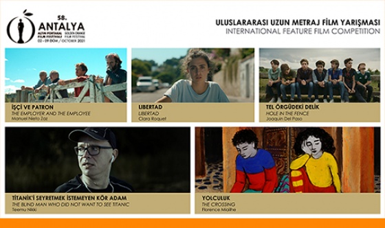 Almanya, ABD, Belçika, Birleşik Krallık, Brezilya, Bulgaristan, Çekya, Finlandiya, Fransa, Gürcistan, İspanya, İsviçre, İtalya, Kosta Rika, Meksika, Monako ve Rusya yapımları 10 film Türkiye’de ilk kez 58. Antalya Altın Portakal Film Festivali, Uluslararası Uzun Metraj Film Yarışması kapsamında izleyiciyle buluşacak. Bu yıl yarışmada beş kadın yönetmenin filmi yer alıyor.