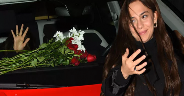 Daha sonra mekandan ayrılan oyuncu eliyle yüzünü kapatarak aracına bindi. Aracın torpido gözünün üstündeki çiçeklerin kimden geldiği merak konusu oldu.