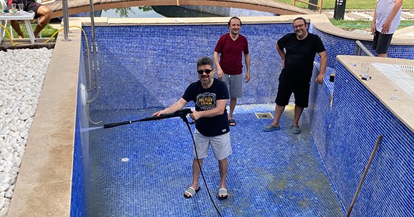 Yasaktan dolayı bahçıvan, havuz bakım ekibi gelemediği havalarda birden ısındığı için iş site sakinlerinin başına düştü. Bayrama kendi verdiğimiz emekle güzelleşen sitemizde keyifle girmek için birlikte kollarımızı sıvadık.