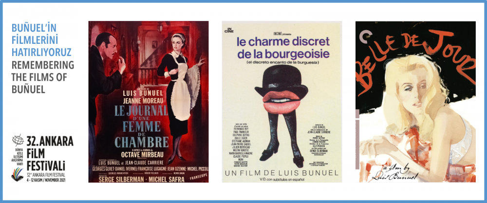 Festival bu yıl sinemada sürrealizm dendiğinde akla gelen ilk isim olan, bugün usta dediğimiz pek çok yönetmene ilham vermiş, İspanyol yönetmen ve senarist Luis Buñuel’in burjuva ahlakını acımasızca eleştirdiği 3 filmini “Buñuel’in Filmlerini Hatırlıyoruz” bölümünde izleyiciyle buluşturuyor. Catherine Denevu’in başrolde olduğu 1967 yapımı “Gündüz Güzeli / Belle de Jour”, bir aksilik çıktığı için bir türlü toplanıp yemek yemeyi başaramayan birkaç burjuva çiftin öyküsünü anlatan “Burjuvazinin Gizli Çekiciliği / Le Charme discret de la bourgeoisie” ve Jeanne Moreau’nun ev sahiplerinin hayatlarını etkileyen bir hizmetçiyi canlandırdığı “Bir Oda Hizmetçisinin Günlüğü / Le journal d'une femme de chambre” festival programında gösterilecek.