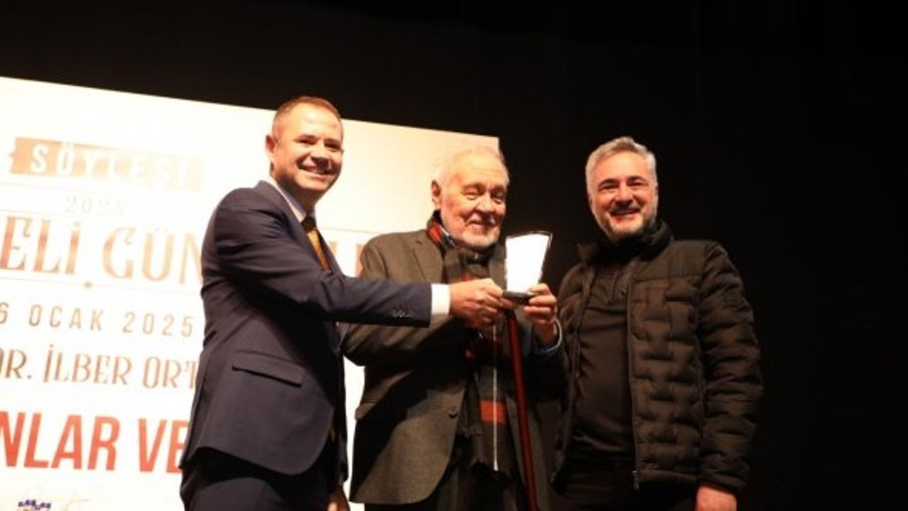Konuşmaların ardından Ortaylı'ya çiçek ve plaket takdim edildi.