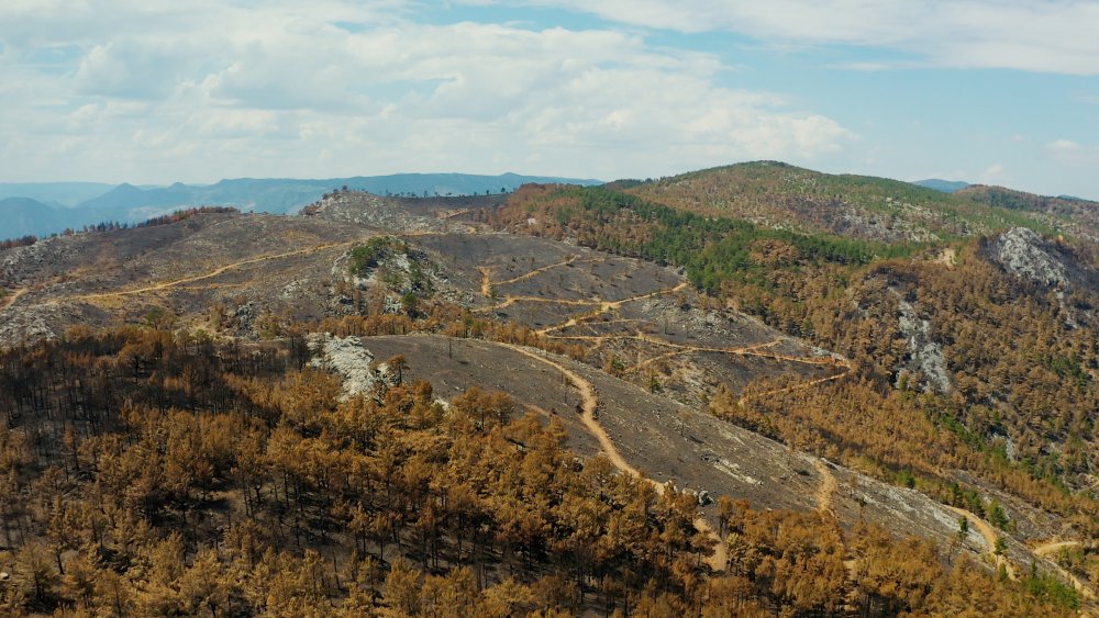 “27 Temmuz 2021’de yeryüzü cenneti Manavgat’ta her şey eskisi gibiydi. Şelale şırıl şırıl akıyor, binlerce turist keyifle tatil yapıyor ve Toroslar’da köylüler, hayvanlar, ağaçlar yemyeşil, cıvıl cıvıl bir hayat yaşıyordu. 28 Temmuz 2021 öğle saatlerindeyse Seki mevkiinde bir yangın başladı. Havadan müdahale geç geldi, yetersiz kaldı; yangın yan köylere, tepelere sıçradı. Manavgat cehenneme döndü. Tam 13 gün aralıksız yandı. 60 bin hektar orman, 200 köy yandı. Eski yeryüzü cenneti Manavgat artık yok. Ama sadece Manavgat değil, eski Marmaris, Selimiye, Turgut, Hisarönü, Mazı, Çökertme, Bodrum, Milas, Köyceğiz, Tunceli, Munzur, Hozat… Buralar da yok. Bunlar sadece bizim bildiklerimiz. Oysa görmediğimiz, bilmediğimiz haberini almadığımız bir sürü yerde milyonlarca ağaç daha yandı. Sizinle 2021 orman yangınlarının izinde bir gezintiye çıkacağız. Tarihimizin en büyük orman yangını felaketini ve sebeplerini yerinde anlamaya çalışacağız. Bir daha asla yaşanmaması için…”