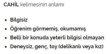 Cahil kelimesinin tanımını görselde görüyorsunuz, peki tanımın ötesinde pratiğine de bakalım mı biraz?