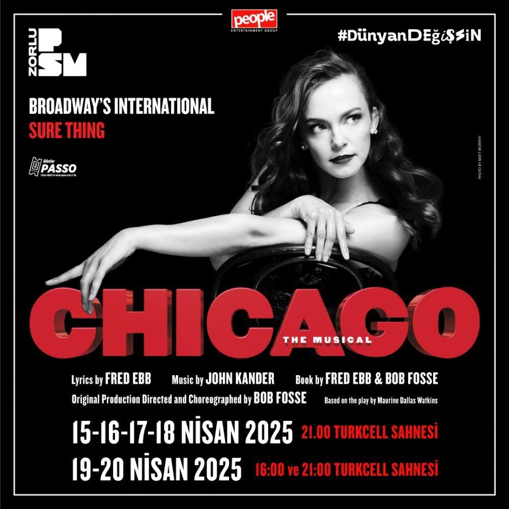 Broadway’in En Uzun Süre Sahnelene Müzikali "Chicago" Zorlu PSM’de! John Kander’ın müzikleri, Fred Ebb’in şarkı sözleri ve Bob Fosse’un ikonik dokunuşuyla Broadway’in en uzun soluklu müzikali "Chicago", 15-20 Nisan tarihleri arasında Zorlu PSM’de izleyiciyle buluşuyor. Avrupa turnesi kapsamında İstanbul’a gelecek olan bu unutulmaz prodüksiyon, West End ve Broadway’in en seçkin isimlerinden oluşan kadrosuyla sahne alacak. 1920’lerin ışıltılı dünyasına bir yolculuk vadeden "Chicago", suç, tutku ve şöhret dolu hikayesiyle seyircilere büyüleyici bir deneyim sunacak.
