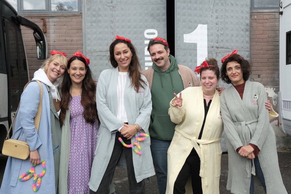 Yeni anne olan Gupse en iyi bildiği yerden yazmış hikayeyi diye düşünüyoruz ama işin aslı başkaymış. Gupse ve Muzaffer Yıldırım başka bir film yapmak için anlaşmışlar. Gupse uzun süre çalışmış ama senaryo bir türlü istediği gibi ilerlememiş. Sonra lohusalık döneminde hissettiklerini yazmaya başlamış ve hızlıca sonuca ulaşmış. Hem kendisi yeni anne olduğu için, hem de etrafındaki arkadaşlarının çoğu doğum yapmaya başlayınca herkesle konuşmaya başlamış. “Bir yazar olarak kadınları kollayan yerden erkekleri de gömmeden anlattım hikayeyi” diyor Gupse ve ekliyor: “Film çıkışında erkeklerin eşlerine çiçek alacaklarını tahmin ediyorum.” Sanırım Türkiye’deki komedyenlerin çoğunun filmini Kıvanç Baruönü yönetti. Filmografisi Cem Yılmaz’dan Ata Demirer’e, Tolga Çevik’ten Hasan Can Kaya’ya, Gupse Özay’a pek çok komedyen filmiyle dolu! Bu Gupse’yle çalıştığı ikinci film! Ben biraz erken gittim buluşmaya ve Kıvanç’la sohbet etme şansımız oldu. Çok mutlu ve heyecanlıydı. Set sürecinin hiç bitmesini istemediğini, Gupse’ye şakasına bile olsa bu hikayeyi dizileştirmesini söylediğini ve bu sürecin hem kendisine, hem ekibe, hem de oyunculara çok iyi geldiğini söyledi.