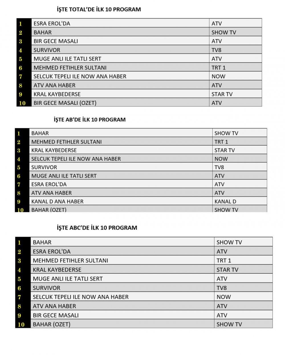 11 Şubat’ta ekrana gelen yapımların reyting sonuçları belli oldu.