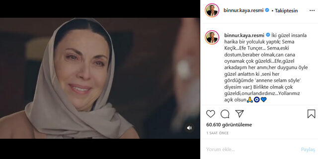 Kaya paylaşımında; "İki güzel insanla harika bir yolculuk yaptık Sema Keçik ve Efe Tunçer. Sema eski dostum, beraber olmak, can cana oynamak çok güzeldi. Efe, güzel arkadaşım her anını, her duygunu öyle güzel anlattın ki , seni her gördüğümde ‘annene selam söyle’ diyesim var. Birlikte olmak çok güzeldi, onurlandırdınız. Yollarımız açık olsun" ifadelerini kullandı.