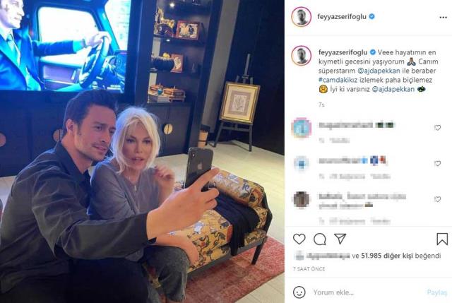 Camdaki Kız'ın son bölümünü Ajda Pekkan'la birlikte izleyen Feyyaz Şerifoğlu o anlarda çekilen fotoğrafı da Instagram'dan paylaştı. Şerifoğlu, Pekkan ile pozuna "Ve hayatımın en kıymetli gecesini yaşıyorum. Canım süper starım Ajda Pekkan ile beraber Camdaki Kız izlemek paha biçilemez. İyi ki varsınız" notunu ekledi.