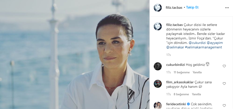 Instagram hesabından yaptığı paylaşımla haberi duyuran Filiz Taçbaş, "Çukur çekimlerimde çekilmiş yeni karakterinin fotoğrafı ile Çukur dizisi ile setlere dönmenim heyecanını sizlerle paylaşmak istedim. Bende sizler kadar heyecanlıyım.. İzmir Foça'dan Çukur için döndüm" dedi.