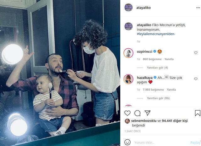 Dizinin Mecnun'u Ali Atay ise oğlu Fikret Ali'yle çekilen bir fotoğrafını "Fiko Mecnun’a yetişti, inanamıyorum" notuyla Instagram'dan paylaştı.