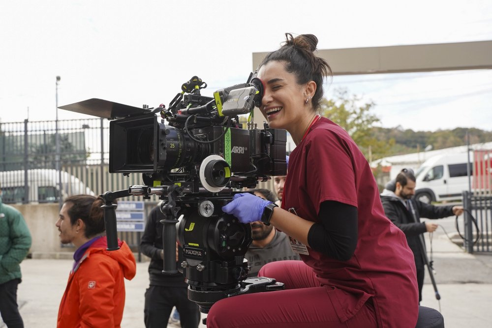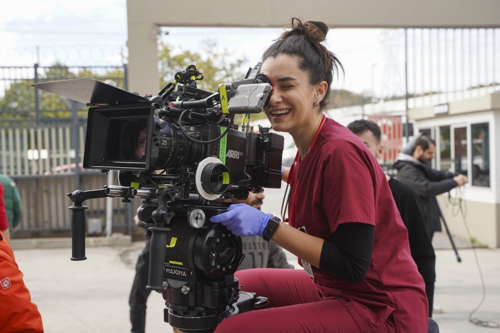 Sevilen ve ilgi ile takip edilen dizide acil servisin yetenekli doktoru Derin’i canlandıran Hande Doğandemir kamera önünden kamera arkasına geçti. Şaryo üzerindeki kameranın başına geçen güzel oyuncu rol arkadaşını görüntüledi. Setteki bu eğlenceli anlar objektiflere de yansıdı.
