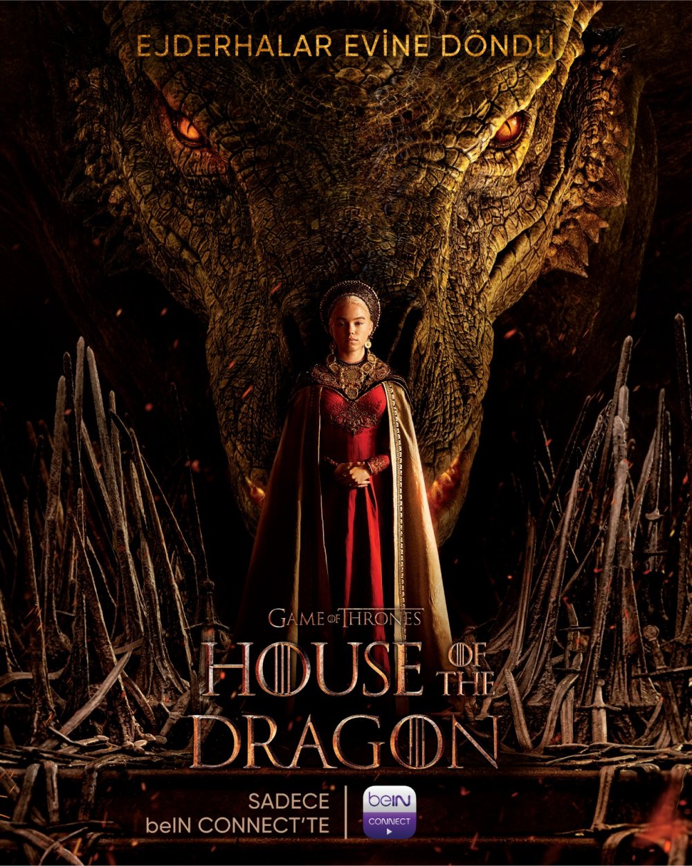 George R. R. Martin'in “Fire & Blood” (Ateş ve Kan) kitabından uyarlanan, demir tahta 300 yıl boyunca hükmeden Targaryen Hanedanı’nın hikayesini anlatan “House of the Dragon”un şimdiye kadar yayınlanan yedi bölümü, 7 Ekim Cuma gününden itibaren beIN CONNECT uygulaması üzerinden diziseverlerin beğenisine sunulacak. 9 Ekim’de yayınlanacak 8. bölümü itibariyle de dizi, beIN CONNECT’te yer alan Canlı TV’deki beIN SERIES SCI-FI kanalından, Amerika ile aynı anda, her Pazartesi 04:00’da Türkçe alt yazılı izlenebilecek.