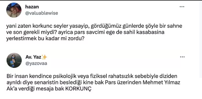 Bu ani ayrılığın ardınan dizinin senaristi Sema Ergenekon, Mehmet Yılmaz Ak’ı takipten çıktı. Ülkede yaşanan deprem felaketinde, dizide Eren komiseri oynayan eşi Uğur Aslan, Hatay’da yaşanan depremde abisi dahil birinci derecede yakınlarını kaybettiği halde dizideki işini aksatmayan Ergenekon’un hiç kayıp yaşamayan Mehmet Yılmaz Ak’a çok bozulduğu iddia edilmişti.