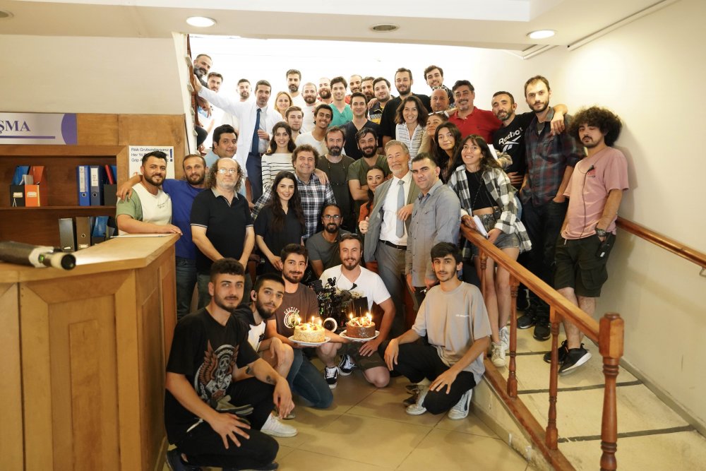 Sürpriz doğum günü kutlamasında çalışma arkadaşlarına teşekkür eden Ozan Akbaba bol bol hatıra fotoğrafı çektirmeyi de ihmal etmedi.