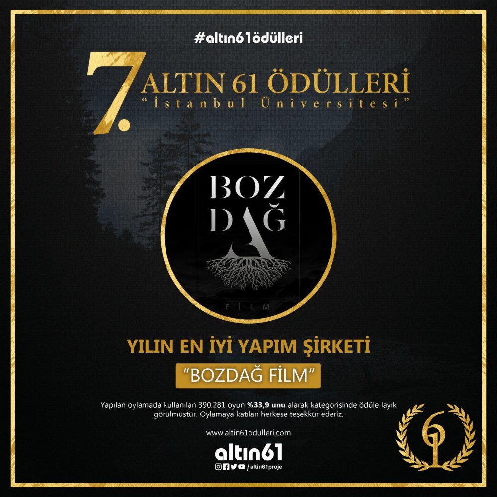 Altın 61 Ödülleri’nde Bozdağ Film “Yılın En İyi Yapım” şirketi ödülüne layık görülürken, ‘Kuruluş Osman’ “Yılın En İyi Dizisi” ve Burak Özçivit de “Yılın En İyi Erkek Oyuncusu” ödüllerini kazandı.