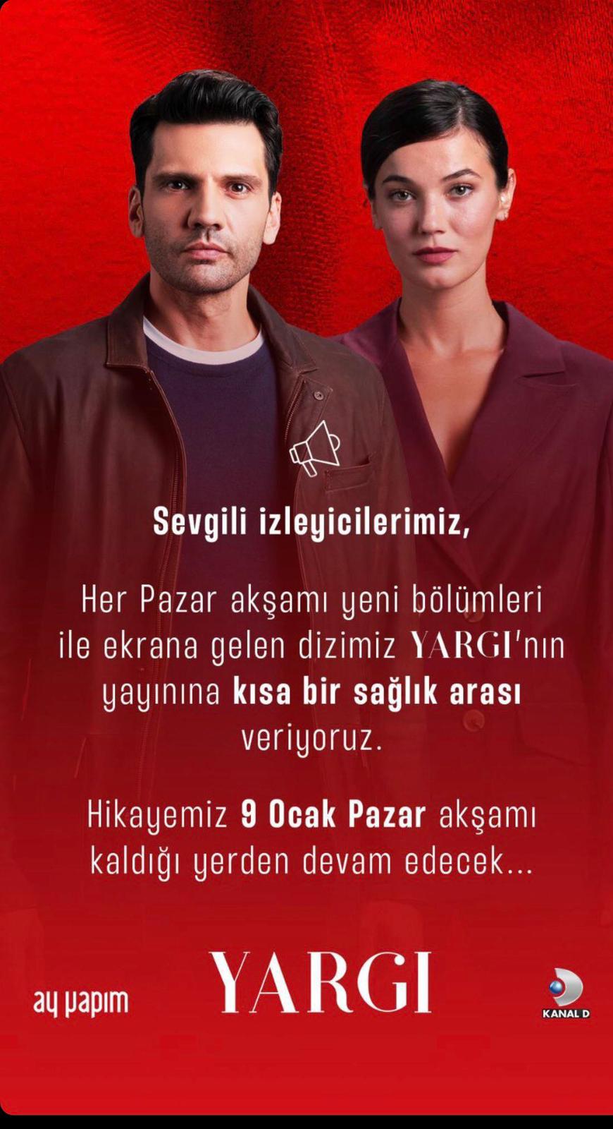 Dizinin yapım şirketi Ay Yapım'ın sosyal medya hesabından yapılan açıklamasında "Kısa bir sağlık arası veriyoruz. 9 Ocak Pazar akşamı saat 20.00'de Kanal D'de görüşmek üzere" denildi.