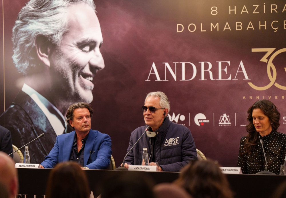 Tüm dünyada on binlerce kişilik arena konserlerinin biletleri aylar önce tükenen, dünyanın en çok sevilen tenoru Andrea Bocelli, 8 Haziran 2024 konseri öncesinde İstanbul’da basın mensuplarıyla bir araya geldi.  Toplantıda barış mesajları veren dünya starı Bocelli, “Kendi müziğimle dünya çapındaki güncel şartların daha da iyileşmesine bir katkım olursa ne mutlu bana. Yani ben sesimden feragat edebilirim yeter ki barış tesis edilsin. Savaş bence çok aptalca bir şey. Korkunçluğu bir yana, en aptalca şey, insanlığın hatası” dedi.