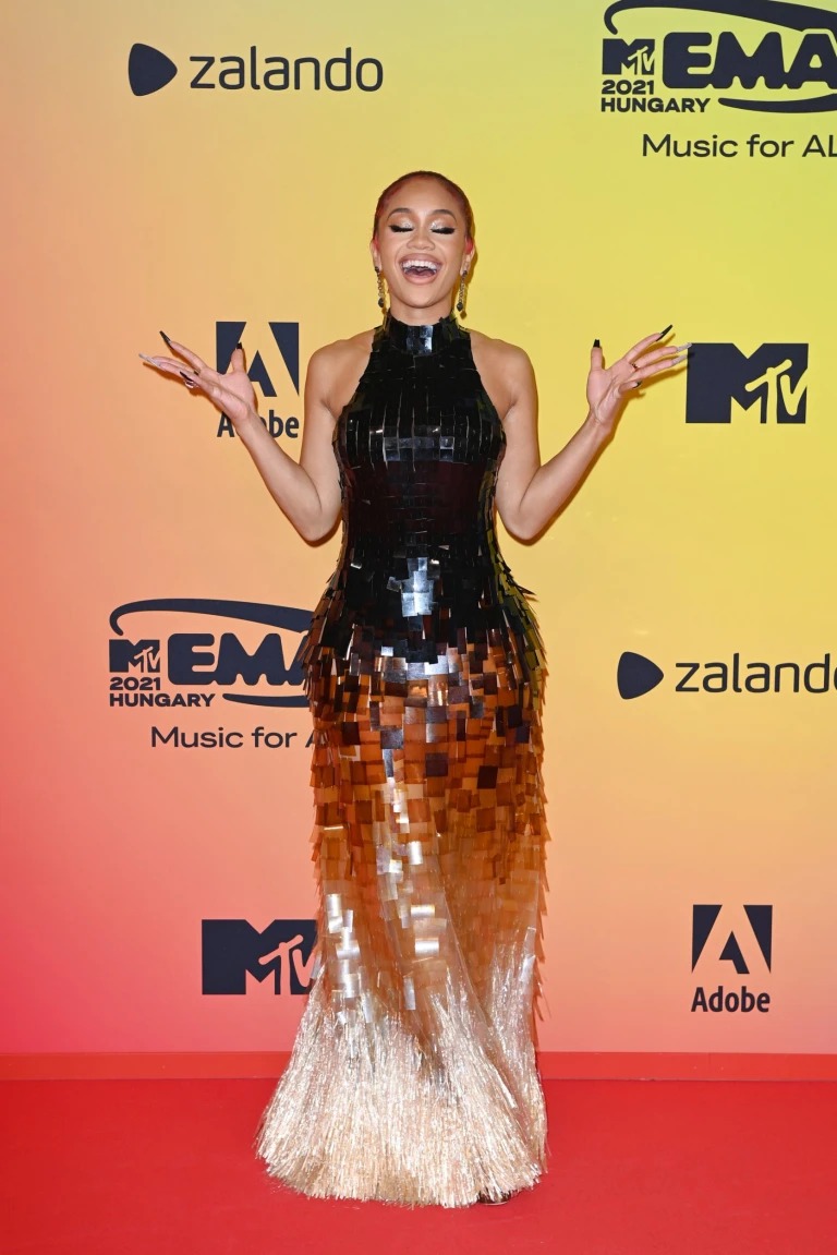 “En Yeni Çıkış Yapan Sanatçı” ödülünün sahibi ve aynı zamanda MTV Avrupa Müzik Ödülleri’nin de sunucusu olan Saweetie, palmiye ağaçlarıyla çevrili bir vahada şampanya dolu bir havuzda güneşlenmek, MTV markalaması yapılmış maskeler takan ilhamını Squid Games’den alan pembe takım elbiseli askerlerle etkileşimde olmak, aynı zamanda arkadaşı olan Brezilyalı şarkıcı Anitta ile sanal olarak sohbet etmek ve kaykay sürmek gibi unutulmaz anlara imza atarak hem modayı hem de mizahı bir araya getirdi. Saweetie, sahneye adeta gökyüzünden ışıltılı bir kar tanesi gibi inerken, hit parçaları “Best Friend”, “Tap In” ve “OUT OUT” şarkılarından oluşan bir karma bir performans gerçekleştirdi.