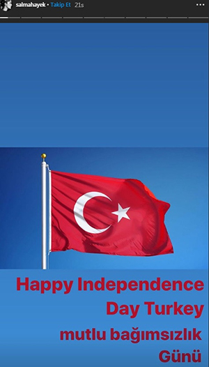 Hayek, Türk Bayrağı'nı paylaşarak "Happy Independence Day Turkey – Mutlu bağımsızlık günü" yazdı.