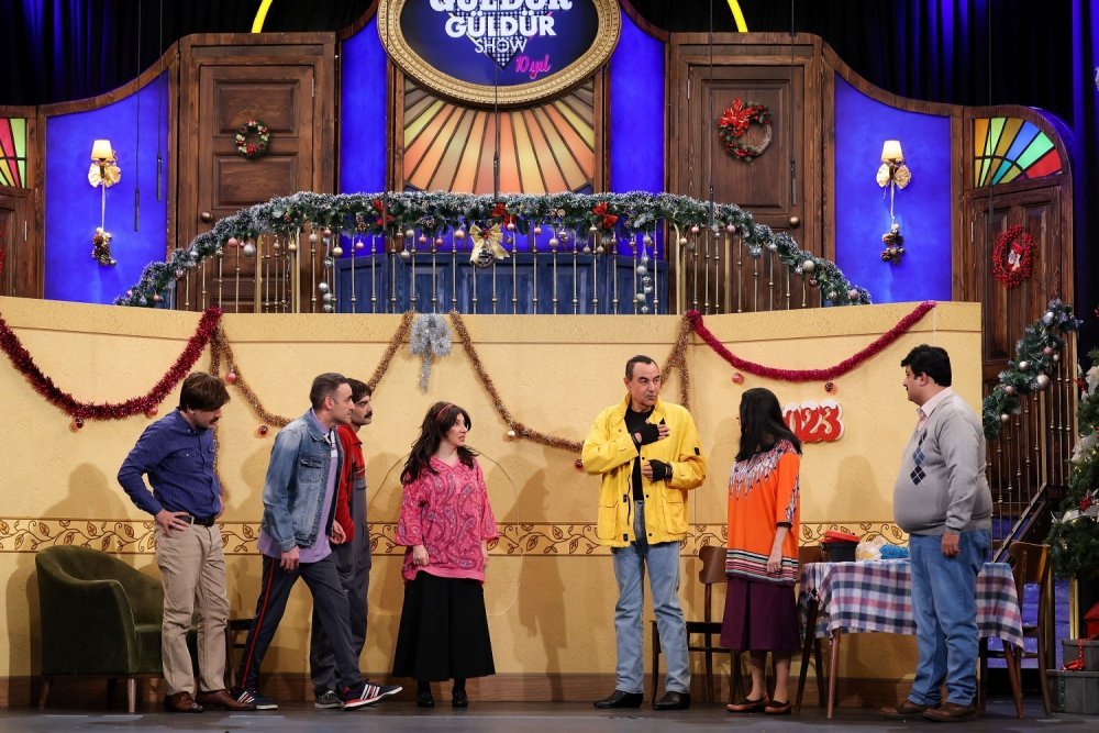 Yapımını BKM’nin üstlendiği, televizyon ve tiyatro tarihine adını altın harflerle yazdıran ‘Güldür Güldür Show’ Cumartesi akşamı yılbaşı özel bölümüyle ekrana geliyor. Yeni yılın heyecanını kahkahalarla yaşatacak ‘Güldür Güldür Show’a sürpriz isimler konuk oluyor. ‘Güldür Güldür Show’un yılbaşı özel bölümünde Sagopa Kajmer-Ramiz, Levent Yüksel, Aleyna Tilki, Devrim Özkan, Sadettin Teksoy, İsmail Tunçbilek-Aytaç Doğan izleyicilere eğlence dolu bir yılbaşı gecesi yaşatacak.