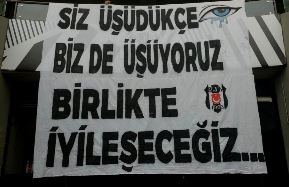 "Kulüplerin başına çöreklenen yandaş, ihale zengini başkanlar sıraya girmiş iktidara bağlılık metinleri yayınlıyor. Bunu kabul etmiyoruz. Bizler bu ülkenin onurlu tribüncüleri olarak diyoruz ki, kulüpler yandaş yöneticilerin malı değil bizimdir, durmamız gereken yer iktidar sahiplerinin yanı değil soğukta çadır bekleyen halkımızın yanıdır."