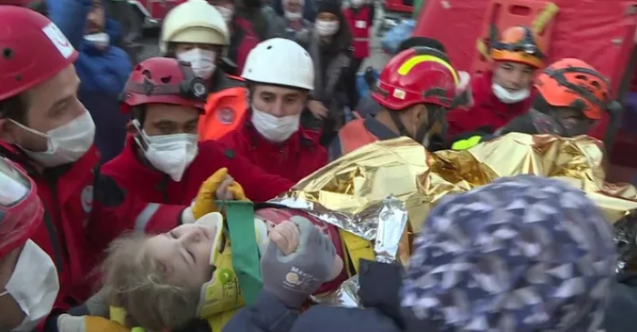 İzmir depreminin ardından yürütülen arama-kurtarma çalışmalarında sabah saatlerinde sevindiren bir haber daha geldi. 14 yaşındaki İdil Şirin'in gece 58'inci saatte sağ kurtarılmasının ardından sabah saat 08.00'de de 3 yaşındaki Elif Perinçek Doğanlar Apartmanı'nın enkazından sağ çıkarıldı.
