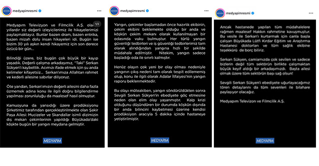 Set ekibi, acı olay üzerine “Ekip arkadaşımız, yapım amirimiz Taki’yi kaybettik. Başımız sağ olsun. Cenaze ile alakalı bilgilendirme yapılacaktır.” diyerek duygu dolu bir açıklama paylaştı