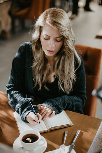 Sera’yı yüzünde tebessümle yazı yazarken görürüz. Ne yazdığını görmek için notlarına yaklaşırız.