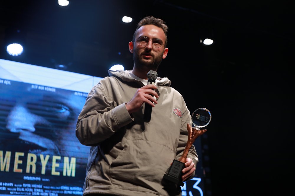 “En İyi Üçüncü Kısa Film” ödülünü sinema yazarı Tuba Özden Deniz takdim etti. “Meryem” filmiyle ödülünü alan Celal Yücel Tombul, bu ödüllerin kısa filmciler için hem maddi hem de manevi olarak çok büyük destek olduğunu ifade etti.
