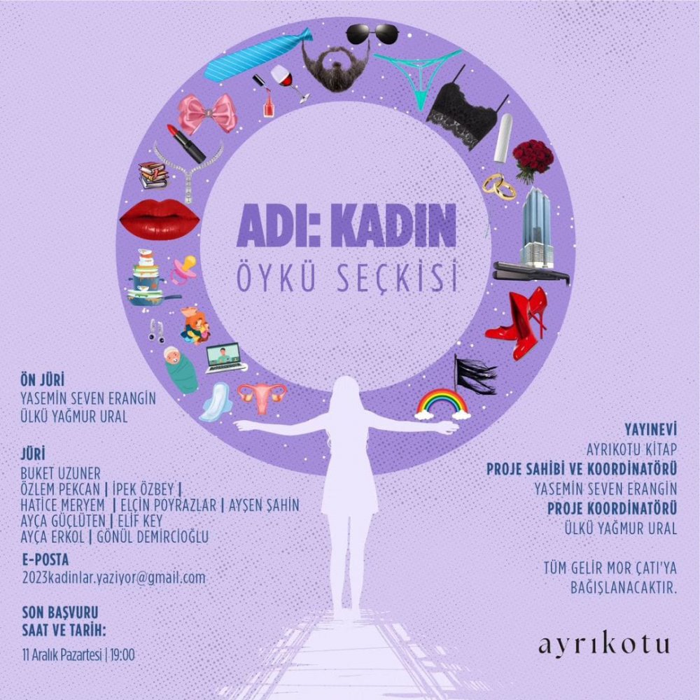 Genç kadın yazarların seslerini duyurmak, kadınların yazdıkları nitelikli öyküleri geniş kitlelere ulaştırmak için “Adı: Kadın” Öykü Seçkisi Projesi 3 Ekim’de hayata geçirildi. Projenin temel amacı, genç kadın yazarların yoluna ışık tutmak, onların kitapseverlerle buluşmasını sağlamak. “Adı: Kadın” öykü seçkisiyle aynı zamanda başka kadınların hayatlarına da dokunulması amaçlanıyor. Kadın yazarların hayat vereceği kitabın gelirinin tamamı Mor Çatı Kadın Sığınağı Vakfı’na bağışlanacak.