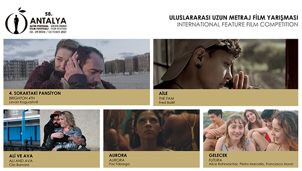 Almanya, ABD, Belçika, Birleşik Krallık, Brezilya, Bulgaristan, Çekya, Finlandiya, Fransa, Gürcistan, İspanya, İsviçre, İtalya, Kosta Rika, Meksika, Monako ve Rusya yapımları 10 film Türkiye’de ilk kez 58. Antalya Altın Portakal Film Festivali, Uluslararası Uzun Metraj Film Yarışması kapsamında izleyiciyle buluşacak. Bu yıl yarışmada beş kadın yönetmenin filmi yer alıyor.