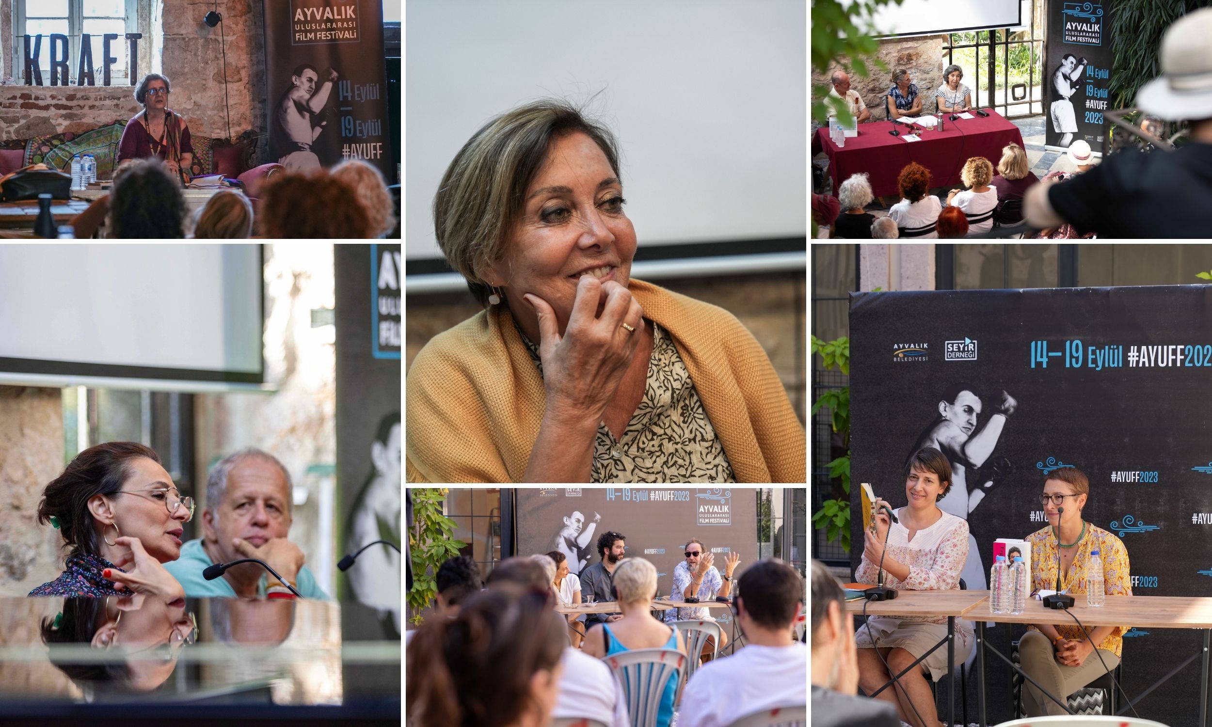 Ayvalık Uluslararası Film Festivali kapsamında Mücadele Çağı ve Hafıza adlı söyleşide Ayvalık Tabiat Platformu ve Ayvalık Bağımsız Kadın İnisiyatifi gibi platformlarda etkin mücadele süreçleri yürütmüş Nebahat Dinler, akademisyen Esra Başak ve küratör, eğitmen, yazar Vasıf Kortun doğa talanı, biyoçeşitlilik kaybı, ortak alanların gaspına karşı uzun yıllardır mücadele veren Ayvalık’ta sivil mücadelenin dönemeçleri konuşuldu. Şeflerin Aşkı / The Taste of Things filminin gösteriminin ardından düzenlenen Ocaktan Sofraya adlı konuşmada İstanbul'u sebze, el yapımı ekmek, baharatlarla tanıştıran Zencefil'in mucidi sosyolog Ferda Erdinç yemek, tutku, lezzet ve haz üzerine bir sohbet gerçekleştirdi. Maffy’s Jazz’ın gösteriminin ardından Türkiye’nin önde gelen caz vokalistlerinden doğaçlama ustası Sibel Köse ve caz piyanisti Kürşad Deniz “Maffy”nin anısına bir konser verdi. Geçen yıl kaybettiğimiz, sinemanın çehresini değiştiren yönetmen Jean-Luc Godard’ın anısına gösterilen Nefret / Contempt filminin gösteriminin ardından, yazınbilimci, sanat kuramcısı ve öğretim üyesi Zeynep Sayın, Nefret’in Düşündürdükleri: Nonkonformizm başlıklı bir konuşma yaptı. Bu konuşma, ekim ayında Sinematek’te gerçekleşecek “60’larda Godard” toplu gösterimi sırasında Sinematek’te de tekrarlanacak. Festivalde ayrıca, yakın zamanda kaybettiğimiz çok yönlü sinema yazarı Cüneyt Cebenoyan anısına, Bilardocu / The Hustler filmi gösterildi ve Çiğdem Öztürk ile Yeşim Burul’un katılımıyla Erguvani İstimbot adlı bir konuşma yapıldı. “Sinemanın Malzemesi” konuşma dizisinde Çiçek Kahraman ile Fatih Özgüven, "Kurgucu ve Malzeme"; Tilbe Saran ve Fatih Özgüven “Oyuncu ve Malzeme”; Yunus Roy İmer ile Florent Herry, Çiçek Kahraman moderatörlüğünde “Görüntü Yönetmeni ve Malzeme” başlıklarında söyleşiler gerçekleştirdi. |