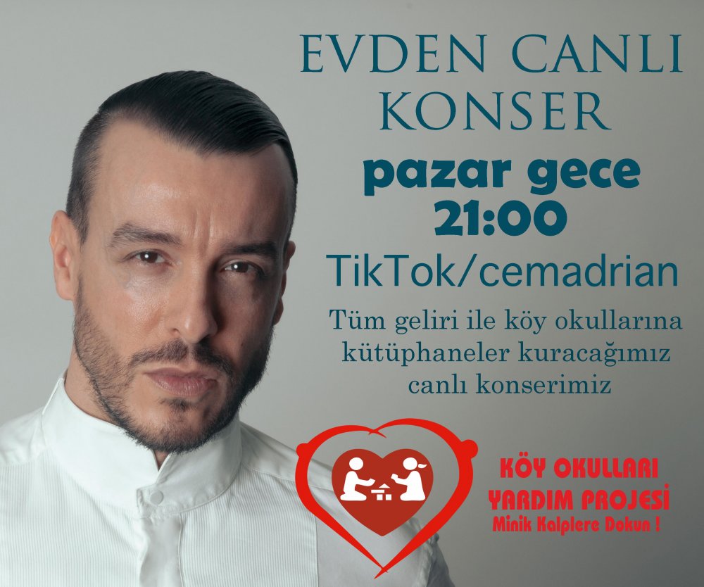 Kendine has duruşu ve güçlü yorumuyla müzik dünyasının en özel isimlerinden olan Cem Adrian; TikTok’ta vereceği ilk konserde Köy Okulları Yardım Projesi Derneği için bağış toplayacak. Bağışta bulunmak isteyen kullanıcılar, TikTok hesaplarındaki bakiyelerine para yükleyerek çeşitli meblağda paraları temsil eden hediye gönderim paylaşımlarıyla, kütüphane açma projesine destek olabilecek.