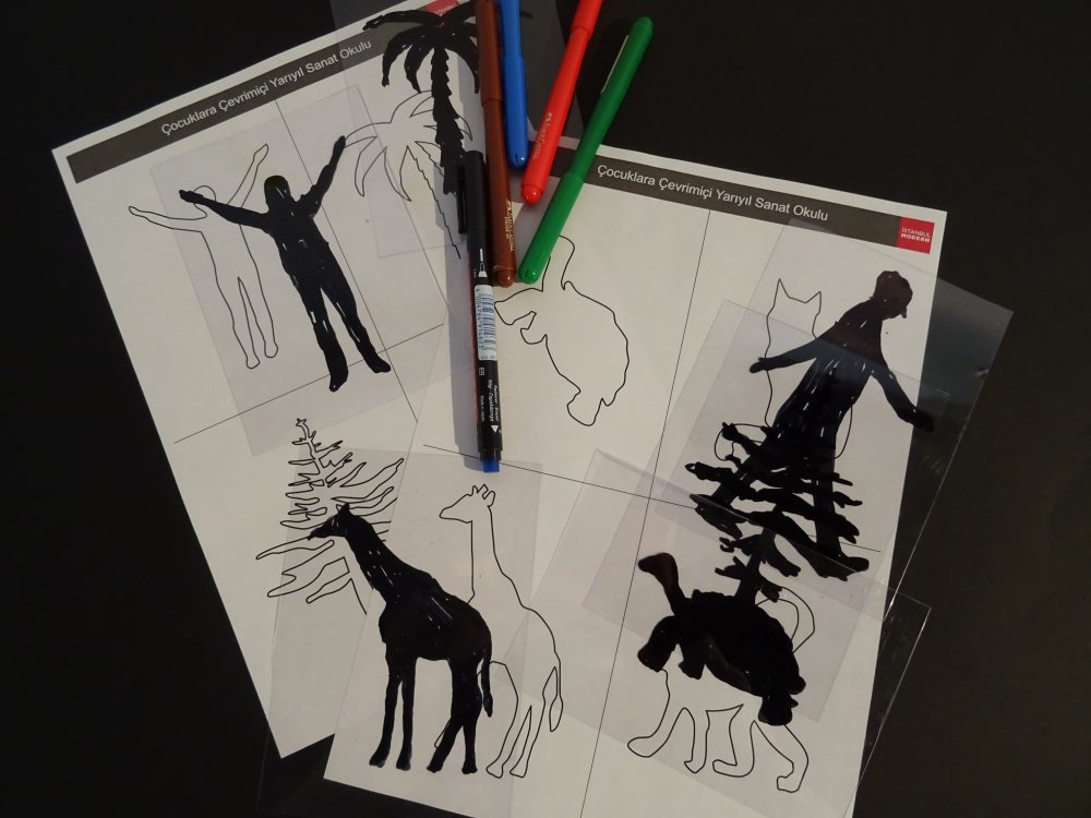 Atölye çalışmaları, İstanbul Modern’in koleksiyon sergileri “Sanatçı ve Zamanı”, “Şimdinin Peşinde” ve “Selma Gürbüz: Dünya Diye Bir Yer” sergilerinin sanal tur gösterimiyle başlıyor. Çocuklar, sanat yapıtlarını müze uzmanlarıyla birlikte çözümlüyor. Ardından müze uzmanının canlı olarak paylaşacağı sanat etkinliğini izlerken kendi sanat çalışmalarını yaratıyorlar. Çevrimiçi atölye her evde kolaylıkla bulunabilen malzemeler kullanılıyor.
