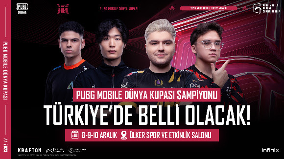Dünyanın en iyi PUBG MOBILE takımı, 8 – 10 Aralık tarihlerinde İstanbul Ülker Spor ve Etkinlik Salonu’nda düzenlenecek PUBG MOBILE Dünya Kupası Büyük Finallerinde belli olacak. Ceza, Ece Seçkin ve Hadise konserleri başta olmak üzere 3 gün boyunca renkli etkinliklere de sahne olacak 86 milyon lira ödül havuzlu dev şampiyona, 10 ülkeden 16 PUBG MOBILE takımına ev sahipliği yapacak ve tüm dünyadan canlı olarak yayınlanacak.