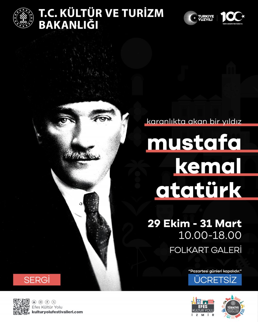 Folkart Galeri’de sergilenecek “Karanlıkta Akan Akan Bir Yıldız Mustafa Kemal Atatürk Sergisi” festivalin en özel rotalarından biri. Sergi, Efes Kültür Yolu Festivali ile başlayacak, festival süresince ve sonrasında Nisan 2024’e kadar ziyaret edilebilecek.