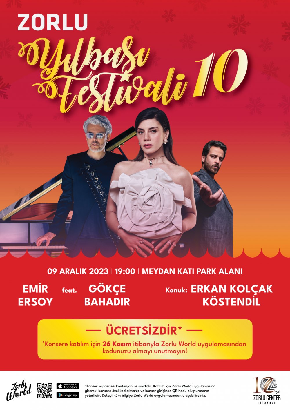 Türkiye'de latin müzik üzerine yaptığı albümler, özel projeler ve sahne performansları ile adından söz ettiren piyanist Emir Ersoy ve oyunculuğu ile adından söz ettiren başarılı sanatçı Gökçe Bahadır, 9 Aralık 2023 cumartesi akşamı Zorlu Yılbaşı Festivali kapsamında sahnedeki yerlerini alıyor. Müziği ve showları ile çok renkli konserlere imza atan Ersoy ve ekibine o gece sürpriz şarkılarla Gökçe Bahadır eşlik edecek. Erken yılbaşı kutlamasında gecede Ersoy&Bahadır çiftinin misafiri ise oyuncu Erkan Kolçak Köstendil olacak.