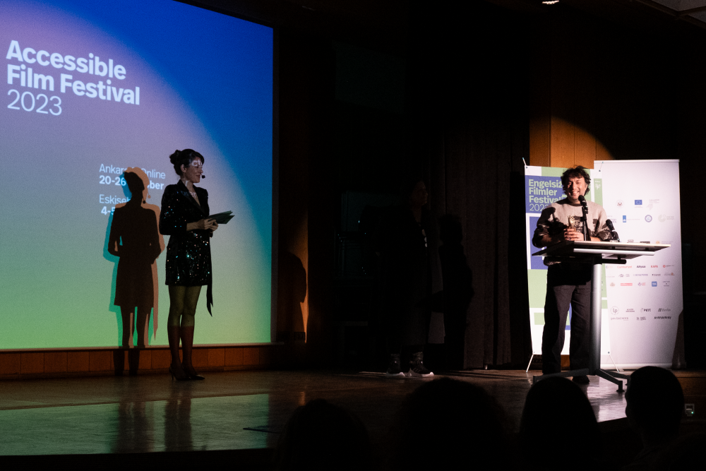 Konuşmaların ardından yedi gün boyunca Ankara’da devam eden Engelsiz Filmler Festivali’nde neler olduğuna dair videonun gösterildiği törende, festivalin programında yer alan ve Cumhuriyetin yüzüncü yılına özel yapılan “Cumhuriyete Doğru” seçkisindeki “İstanbul’un Çeşmeleri ̇ve İstanbul’da Türk Kadınları” filmi sesli betimleme ile gösterildi.