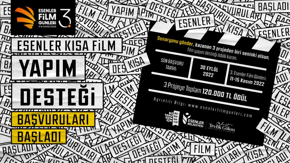 Bu yıl programına dahil ettiği bölümlerle kapsamını genişleten “3. Esenler Film Günleri”, önemli bir yeniliğe imza atarak “Esenler Kısa Film Yapım Desteği”ni hayata geçirdi. Kısa film türünde yeni üretimleri desteklemek, geleceğin yapımcı ve yönetmenlerinin ortaya çıkmasını sağlamak amacıyla üç projeye toplam 120 Bin TL doğrudan desteğin sağlanacağı bölüme ilgi ise yoğun. Senaryo aşamasındaki projelerin üretimine yardımcı olmak, yönetmen ve yapımcılara proje geliştirme, sunma ve uluslararası festivaller noktasında eğitimler vererek sinema sektörüne uzun vadede fayda sağlamayı hedefleyen desteklere başvurular 30 Eylül’e kadar devam ediyor.