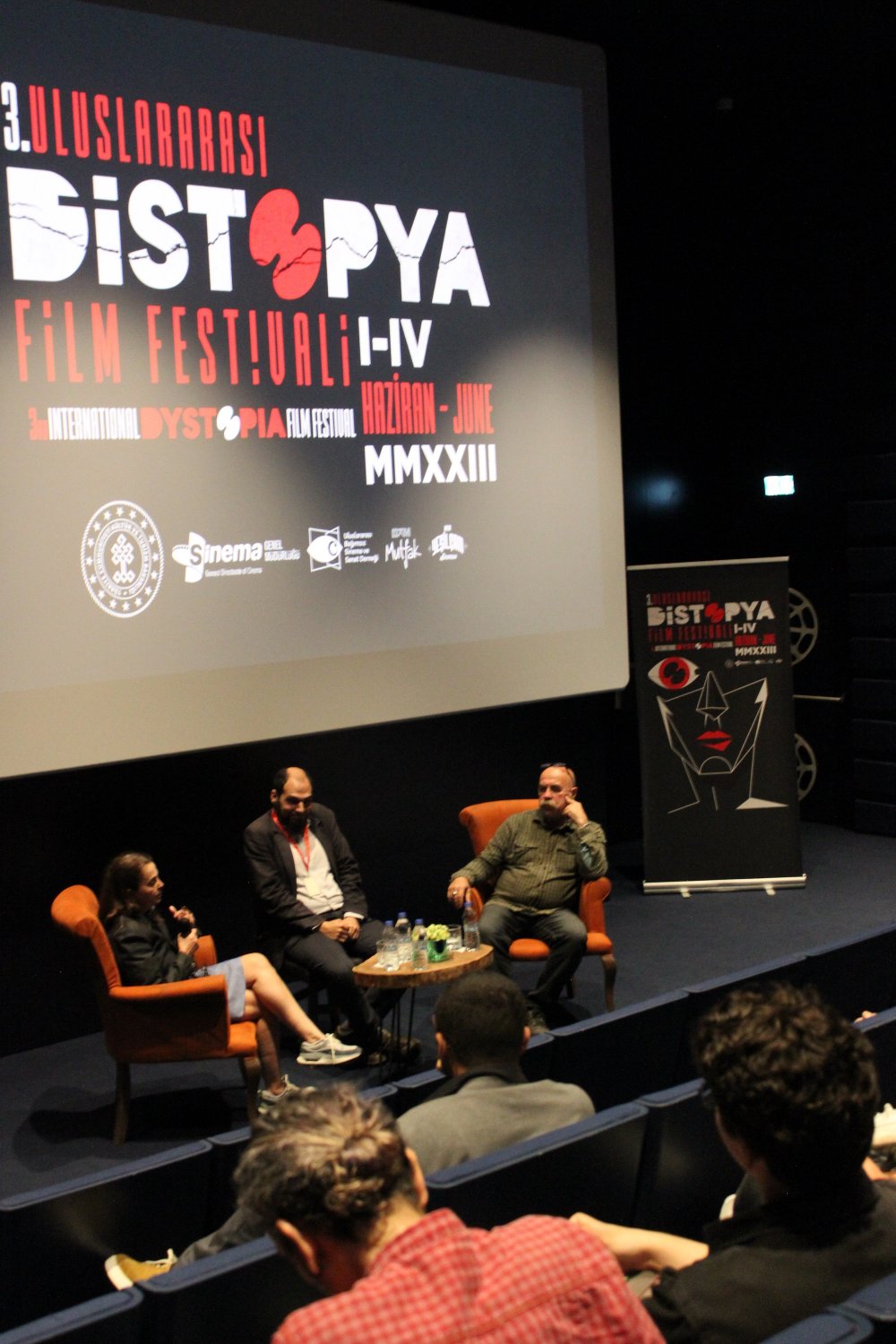 Festivalin üçüncü gününde, sinema eleştirmeni Kerem Akça’nın moderatörlüğünde, yönetmen Ezel Akay ve cast direktörü Harika Uygur’un katılımıyla “Özgün Bir Anlatı Olarak Sinemada Distopyanın Biçimlenişi” konulu panel gerçekleştirildi. “Sosyolojik ve psikolojik olarak seyirci böyle filmlere ya ilgi gösteriyor ya da hiç sevmiyor” diyen Ezel Akay “Distopyanın negatif bir tarafı var. Bir tür mızırdanma hali. Gelecekte her şey çok kötü olacak, hiç boşuna uğraşmayın diyen filmler.