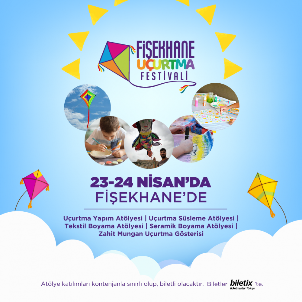 Fişekhane Uçurtma Festivali, 23-24 Nisan tarihlerinde çocuklara bayram keyfi yaşatıyor. Ödüllü uçurtma sanatçısı Zahit Mungan’ın düzenlediği atölyelerle çocuklar, gökyüzünü kendi yaptıkları uçurtmalarla dolduracaklar.