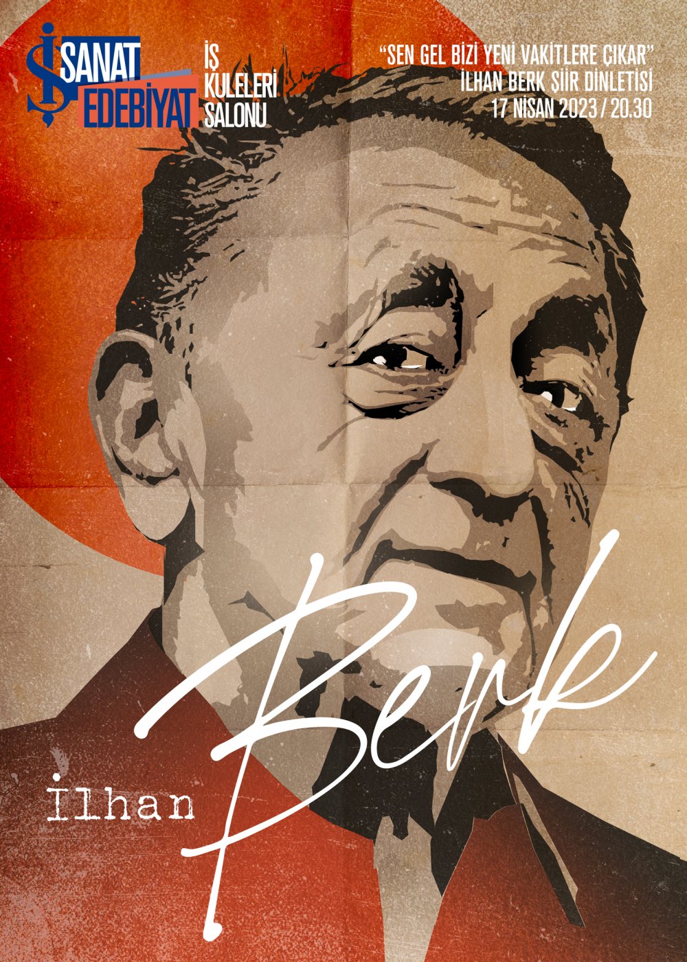 İş Sanat’ın sezon boyu edebiyatımızın usta yazarlarının eserlerini izleyicilerle buluşturduğu, yoğun ilgi gören dinletileri, İlhan Berk şiirlerinden derlenen “Sen Gel Bizi Yeni Vakitlere Çıkar” başlığı ile devam ediyor.