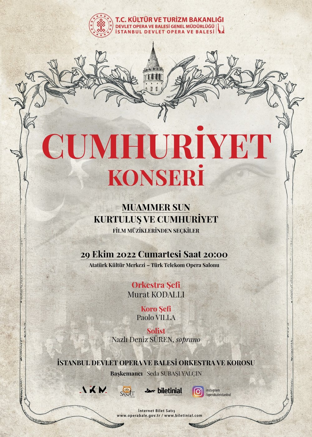 İstanbul Devlet Opera ve Balesi, kuruluşunun 99. yılında,“Cumhuriyet” i, Muammer Sun’un Ölümsüz Eserleri; Kurtuluş” ve “Cumhuriyet” film müzikleri ile kutluyor.