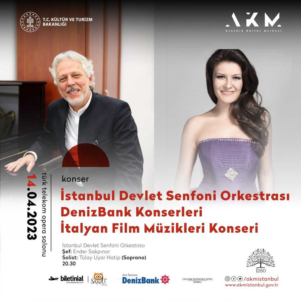 İstanbul Devlet Senfoni Orkestrası DenizBank Konserleri kapsamında sanatseverler bu kez sinemanın büyülü dünyasına müzik dolu bir yolculuk yapacak. AKM Türk Telekom Opera Salonunda 14 Nisan’da gerçekleşecek konserde, ‘Hayat Güzeldir’, ‘Cennet Sineması’, ‘Bir Zamanlar Amerika’da’ ve ‘Misyon’ gibi sinema tarihine damga vurmuş filmlerin müziklerinden oluşan bir repertuvar seyirciyle buluşacak. Şef Ender Sakpınar yönetimindeki İstanbul Devlet Senfoni Orkestrası konserinde soprano Tülay Uyar Hatip solist olarak sahne alacak.