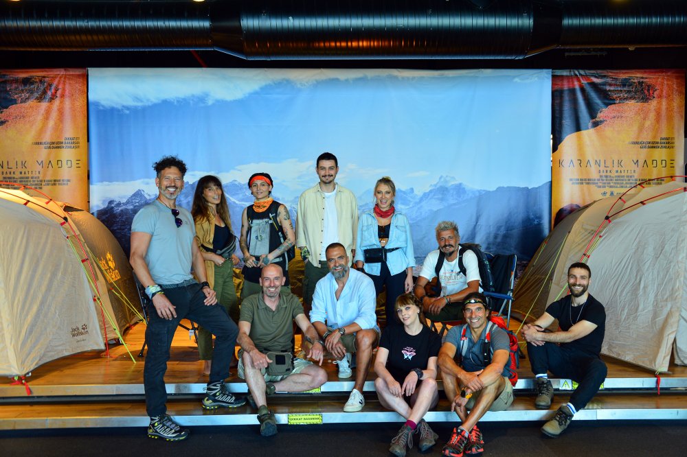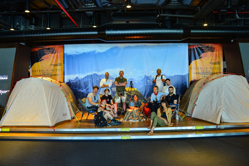 ‘‘KARANLIK MADDE’’ filmi ilklere imza atmaya devam ediyor. Film gala gecesinde misafirlerini kamp alanı yaratarak, büyük bir prodüksiyon ile karşıladı. Sinema salonuna, dünyanın deniz seviyesi üzerindeki en yüksek dağı Everest’e, son tırmanıştan önce kurulan, zorlu hava şartlarına uygun, 2.10 metre boyunda ki çadır kuruldu. Ateş, çadır, özel ses, ışık ve görüntü efektleri kullanılarak, tüm kamp malzemeleriyle misafirlere kamp atmosferi yaşatıldı.