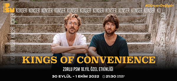 Sakin vokaller, zarif gitar ve piyano melodileriyle huzuru dinleyicileriyle buluşturan, indie-pop’un en kült isimlerinden Kings Of Convenience, Zorlu PSM’nin 10. yılı kapsamında 30 Eylül ve 1 Ekim olmak üzere, tam iki gece, müzikal bir ziyafet yaşatmaya Türkiye’ye geliyor.