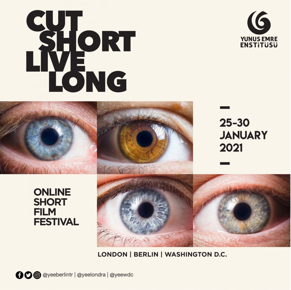 Londra, Berlin ve Washington DC Yunus Emre Enstitüleri tarafından ortaklaşa düzenlenen Cut Short, Live Long Çevrimiçi Kısa Film Haftası kapsamında, toplam 13 ödüllü kısa film Almanya, İngiltere ve Amerika’da eş zamanlı olarak 25-30 Ocak 2021 tarihleri arasında sinemaseverlerin beğenisine sunulacak.