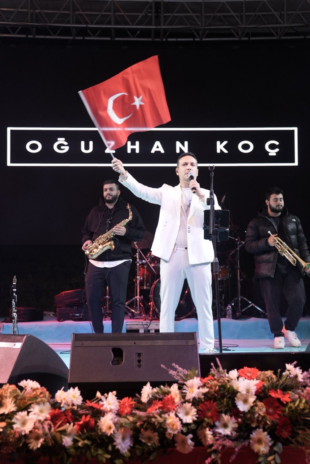 Konser alanını saatler öncesinden dolduran coşkulu kalabalık, Oğuzhan Koç ‘u Türk bayrakları karşılarken konserin açılışını büyüleyici bir atmosferde 10. Yıl Marşı ile yapan Oğuzhan Koç dakikalarca alkışlandı.