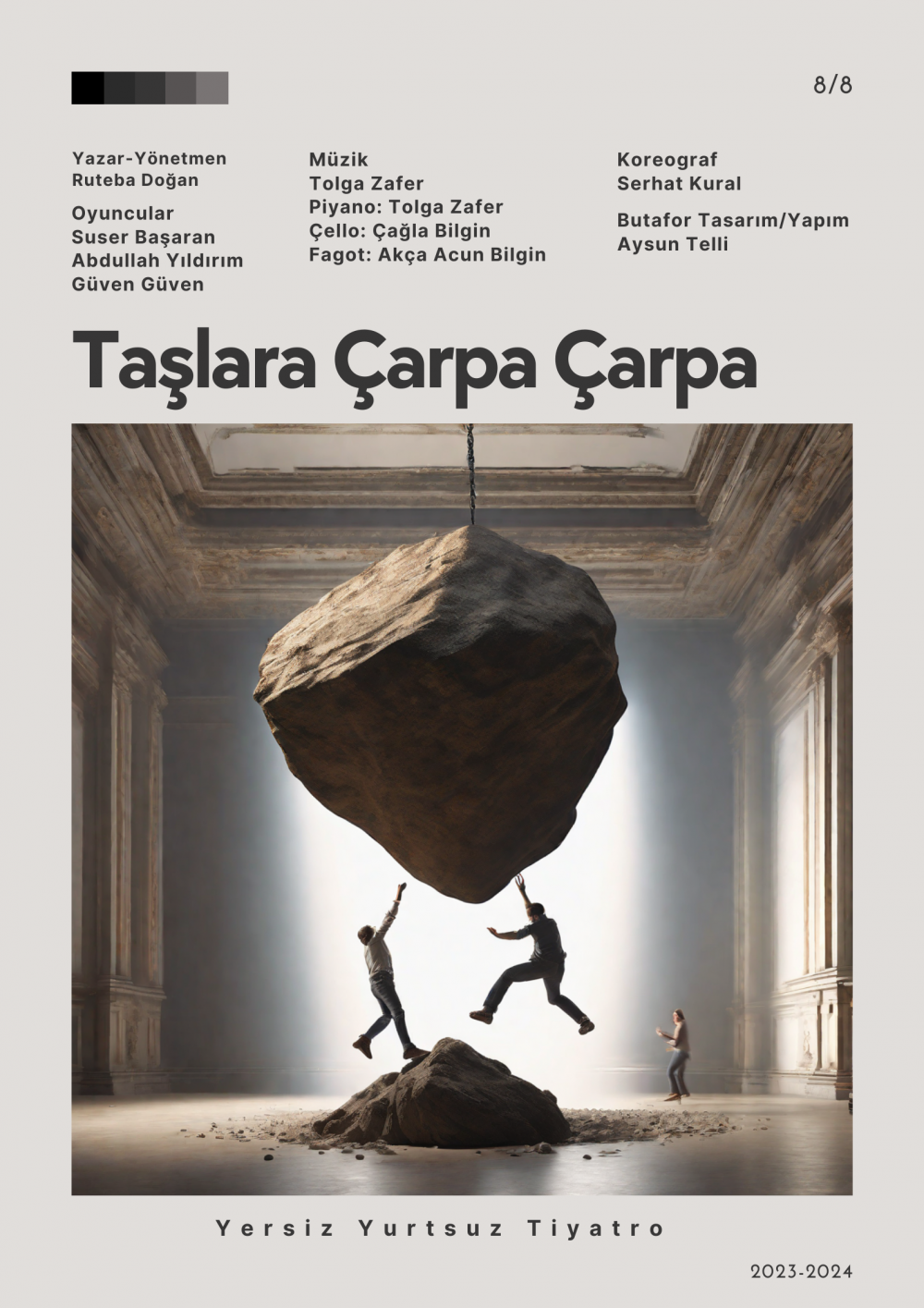 6 Aralık ve 15 Aralık akşamı saat 20.00’de, Panda Sahne’de sahnelenen ve bu sezonun yeni oyunlarından biri olan Ruteba Doğan’ın yazıp yönettiği, Yersiz Yurtsuz Tiyatronun “Taşlara Çarpa Çarpa” oyunu seyirciyle buluşacak.